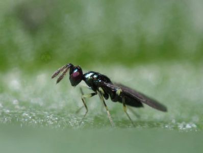Diglyphus isaea is a small parasitic wasp that attacks the larval stages of at least 9 different species of leaf-mining flies (primarily Liriomyza spp.) found on various crops (including tomatoes, cucumbers, eggplant, peppers and various ornamentals (such as chrysanthemum and gerbera). This wasp is most effective at warmer temperatures (approx. 25–33 °C (77–91 °F), depending on host species and crop).